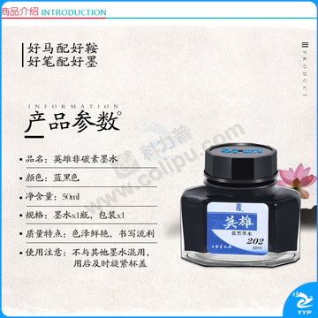 英雄 HERO 普通墨水 202 50ml/瓶 (蓝黑) 10瓶/盒 (新老包装交替中)