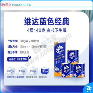 维达 vinda 蓝色经典卷筒卫生纸 V4069 四层 140g/卷 10卷/提 6提/箱 (新老包装交替发货)