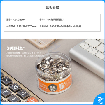 晨光(M&G)防锈图钉PVC盒装金属圆头钉300枚/盒 ABS92604 一包24盒装