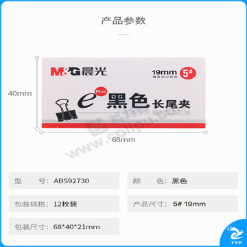 晨光 M&G Eplus盒装黑色长尾夹 ABS92730 5# 19mm 12个/盒 12盒/包 300盒/箱