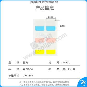 得力 deli 索引标签贴 25903 48枚3色 指示贴 归类便利贴记事贴N次贴28*25mm