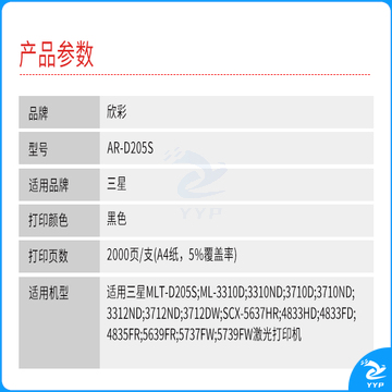 欣彩 AR-D205S硒鼓 专业版2K 适用三星MLT-D205S ML-3310D 3310ND 3710D 3710ND 3312ND 3712ND激光打印机