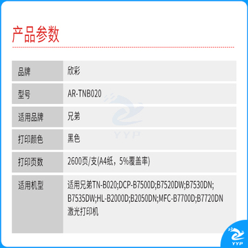 欣彩 AR-TNB020粉盒 专业版 适用兄弟TN-B020 DCP-B7500D B7520DW B7530DN B7535DW HL-B2000D激光打印机