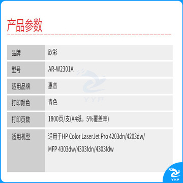 欣彩 AR-W2301A硒鼓带芯片 (青)蓝色 适用惠普Color LaserJet Pro 4203dn 4203dw MFP 4303dw
