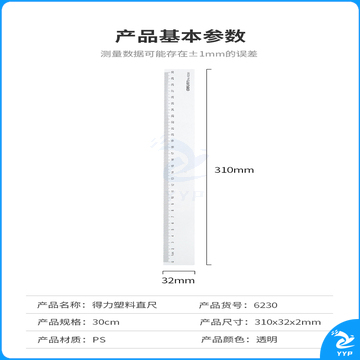 得力(deli) 6230办公通用直尺30cm 测量绘图尺子 办公用品
