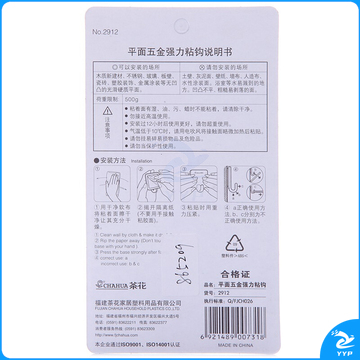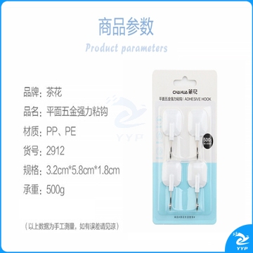 茶花(CHAHUA) 2912 平面五金强力粘钩(1*4)方形颜色随机(单位:组)