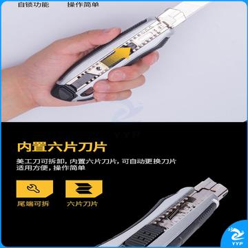得力工具DL019_18mm铝合金包胶6连发美工刀(新VI)(黄色)(把)