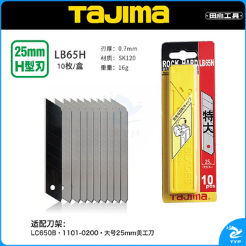 田岛美工刀片,配用于超重型美工刀(10片装) 25 x 126mm 厚0·7mm, LCB-65