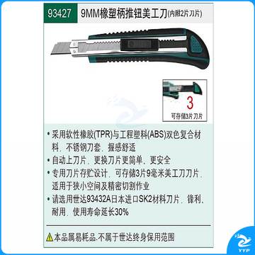 世达SATA-93427/9MM橡塑柄推钮美工刀(把)