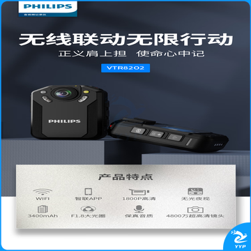 飞利浦 VTR-8202随身执法记录仪胸前高清WIFI实时监控手机互联运动相机 WIFI互联128G