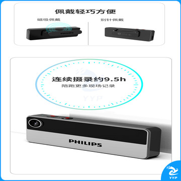 飞利浦(PHILIPS)VTR8001录音录像胸牌隐藏式执法记录仪高清便携WIFI连接 128G