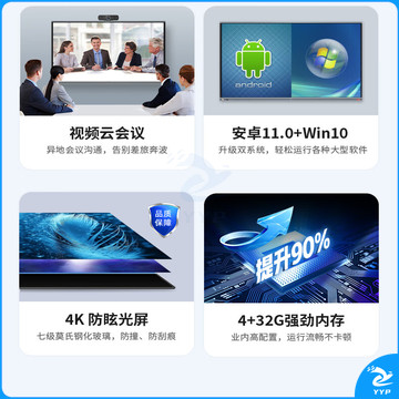 JAV智能会议平板电视一体机75英寸智慧屏会议大屏幕电子白板教学培训投屏触屏办公电视会议室双系统