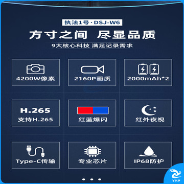执法1号DSJ-W6执法记录仪4K高清红外夜视超长续航胸前佩戴随身执法仪16G