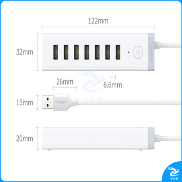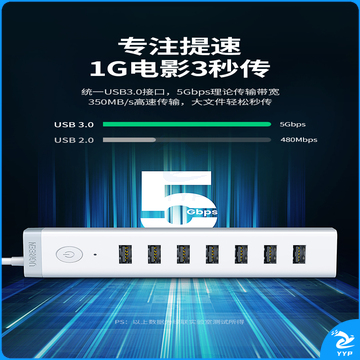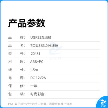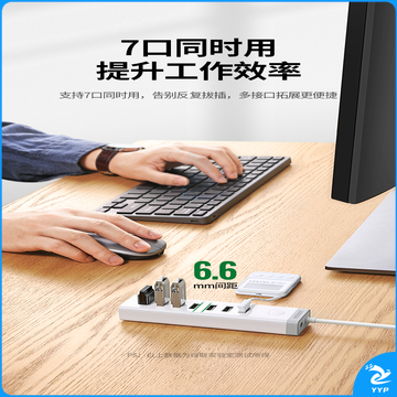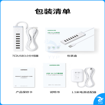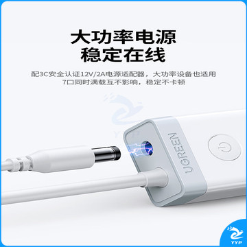 绿联(UGREEN) USB3.0分线器高速7口HUB集线器转换器扩展坞 适用笔记本台式电脑手机刷机群控一拖七带供电12V2A