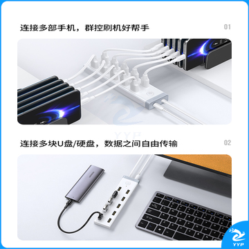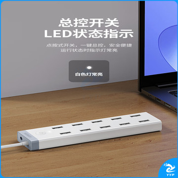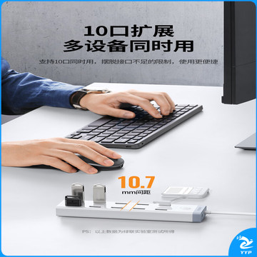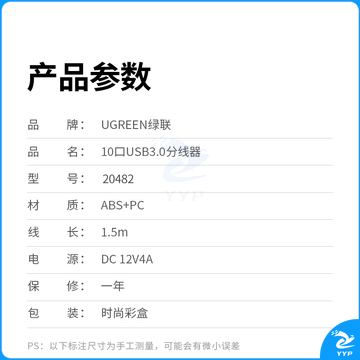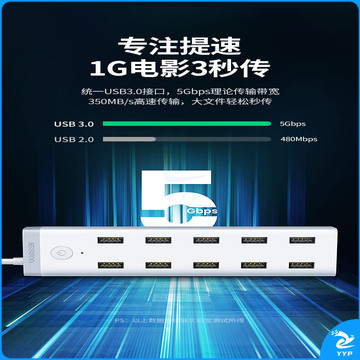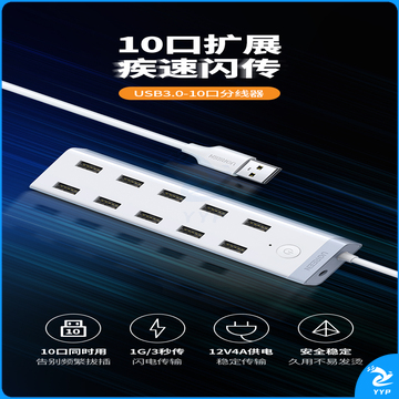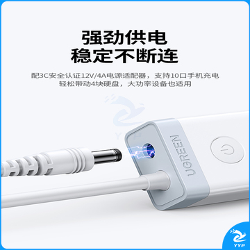 绿联(UGREEN)USB3.0分线器 高速拓展10口HUB集线器扩展坞 适用台式机笔记本电脑一拖十转换器带供电口 1.5米