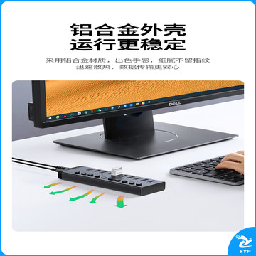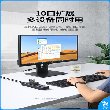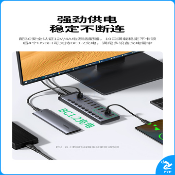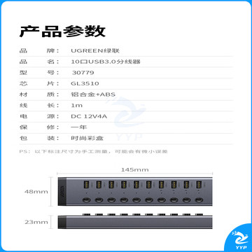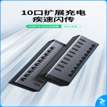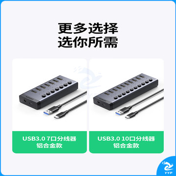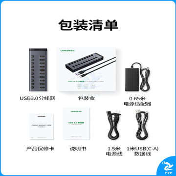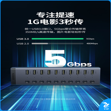 绿联(UGREEN)USB3.0分线器 高速10口拓展坞HUB集线器扩展笔记本台式电脑接口一拖十转换接器延长线带电源适配器