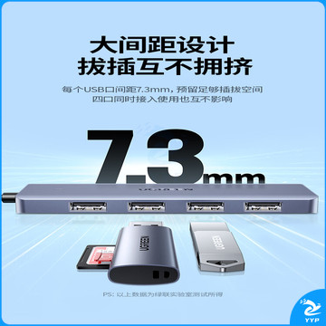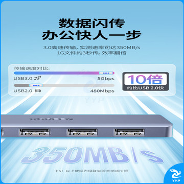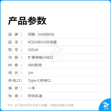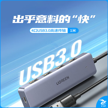 绿联(UGREEN)USB3.0分线器扩展坞 高速4口集线器HUB拓展坞 笔记本台式电脑一拖多口转换器转接头延长线带供电口