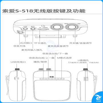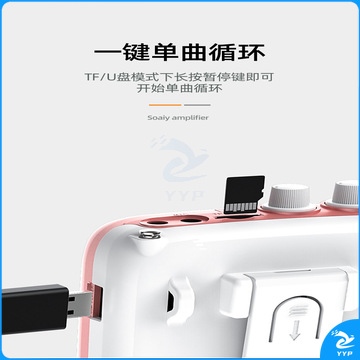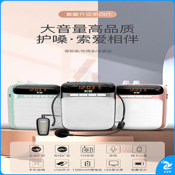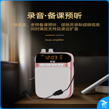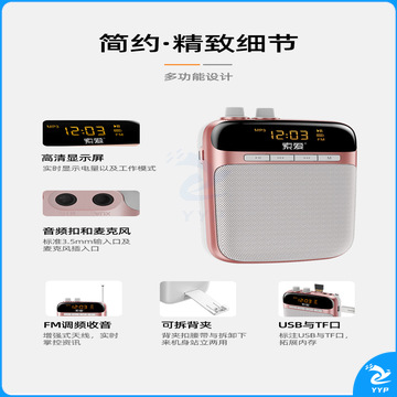 索爱(soaiy)S-518 FM无线小蜜蜂扩音器教师专用U盘TF卡麦克风喇叭导游收音机蓝牙户外音箱音响便携式 冰雾蓝