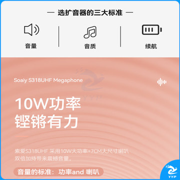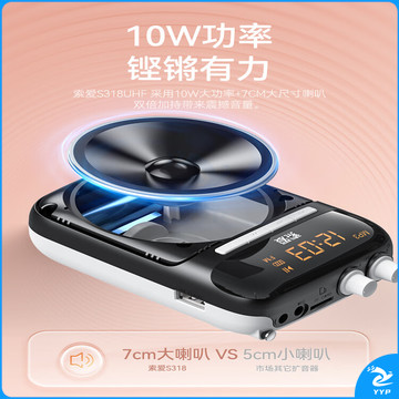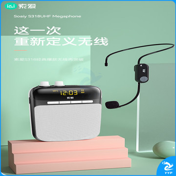 索爱(soaiy)S318UHF无线小蜜蜂扩音器教师10W大功率U盘TF蓝牙音箱音响防啸叫喇叭麦克风户外便携式 金