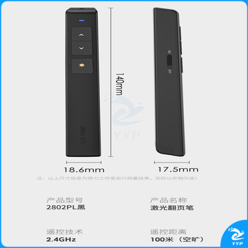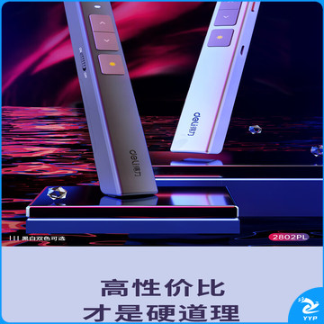 得力激光笔 百米远控教师专用ppt超链切换 激光笔教鞭/无线演示器课件笔 红光激光翻页笔 黑色 2802PL
