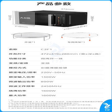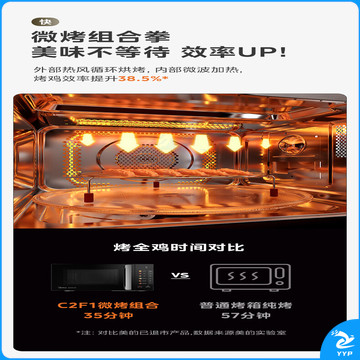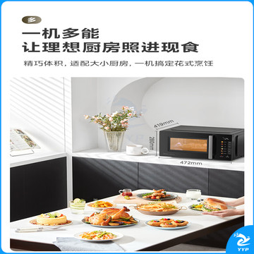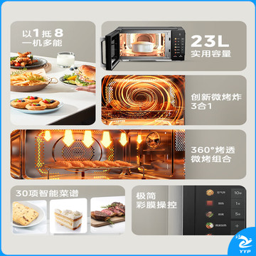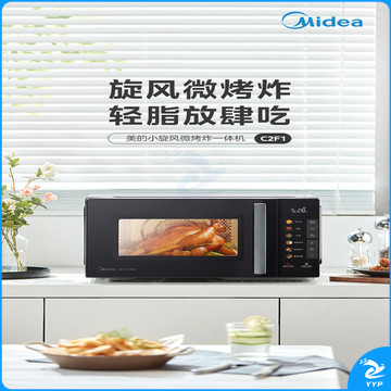 美的(Midea)小旋风空气炸微波炉烤箱一体机 800W变频 不锈钢腔体 智能解冻 低噪音23L(C2F1)