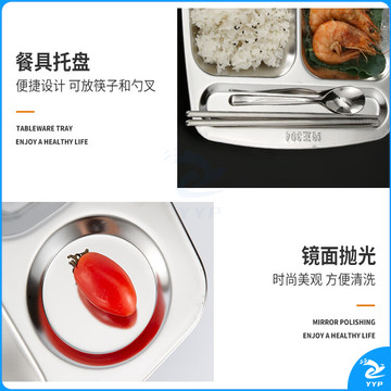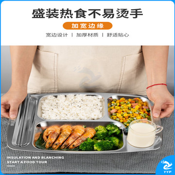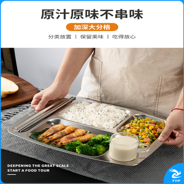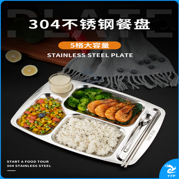 美厨(maxcook)304不锈钢餐盘饭盒分格 快餐盘学生餐盒 五格大号加厚MCFT113