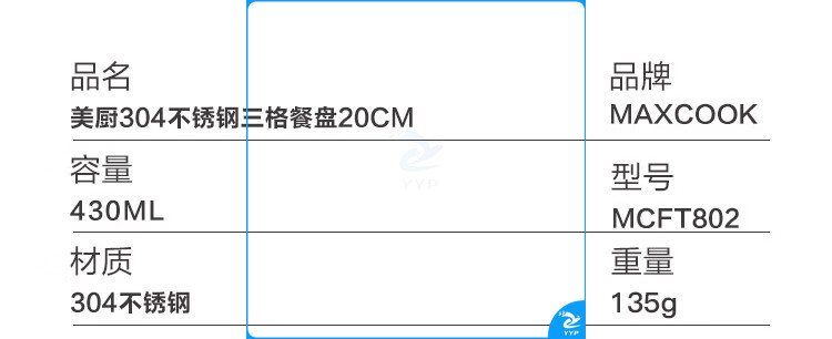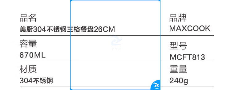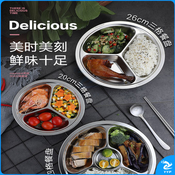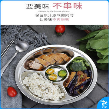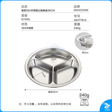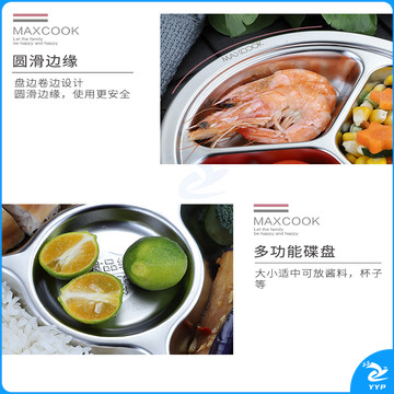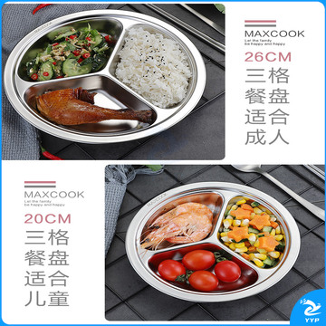 美厨(maxcook)304不锈钢餐盘饭盒分格 快餐盘学生餐盒四格加厚加大26cm MCFT803