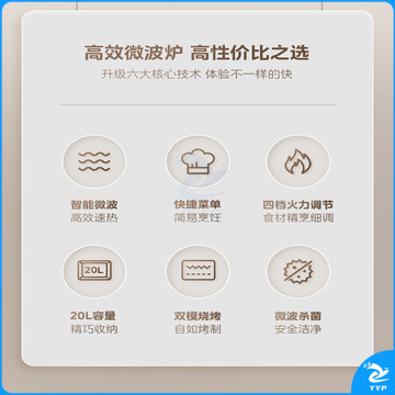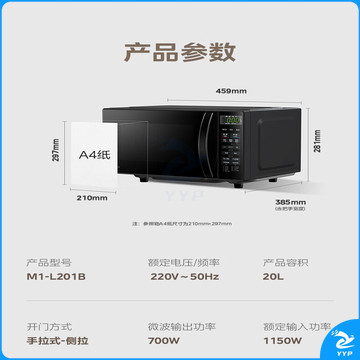 美的(Midea)微波炉烤箱一体机 小型家用20升微波炉 光波加热 钻石背板(M1-L201B)