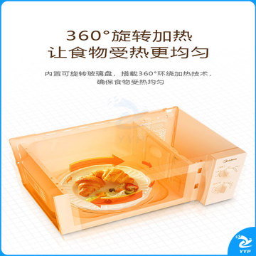 美的(Midea)快捷微波炉 家用小型 360°转盘加热 旋钮操控 易洁内胆(M1-L213B)