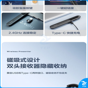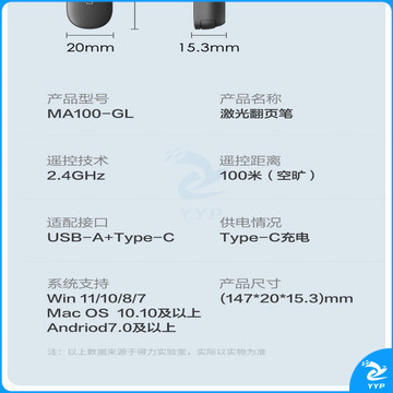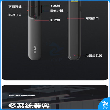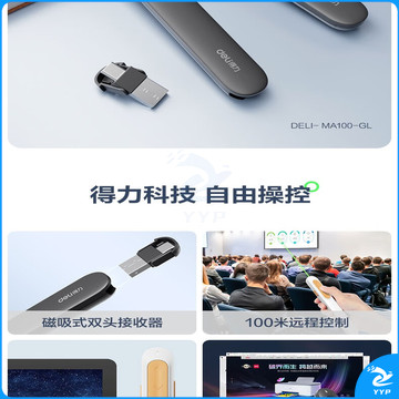 得力(deli)激光翻页笔 360度控制 激光笔教师充电款超链切换教鞭/无线演示器 ppt翻页笔 绿光 深灰 MA100-GL