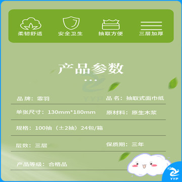 霏羽抽纸3层100抽*24包餐巾纸面巾纸家用纸巾家庭装抽取式 整箱 0550
