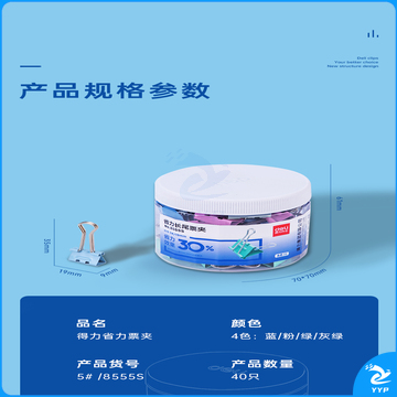 得力(deli)40只19mm省力彩色长尾夹票夹 5#金属燕尾夹票据夹子 办公用品 40只/盒 8555S