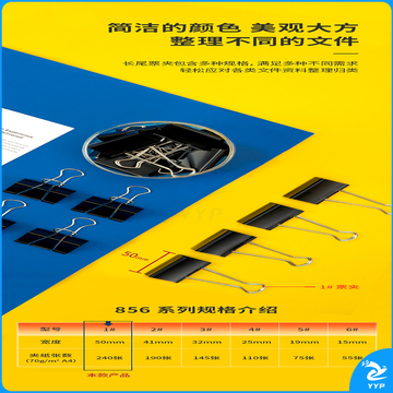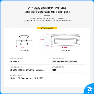 得力(deli)12只50mm黑色长尾夹票夹 大号金属燕尾夹票据文件夹子 办公用品 12只/筒 8561