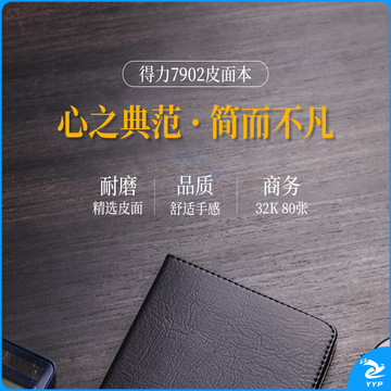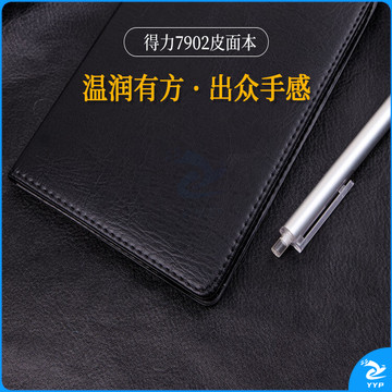 【全网低价】得力(deli)32K80张商务经典皮面本 会议记事本日记本笔记本子 黑7902