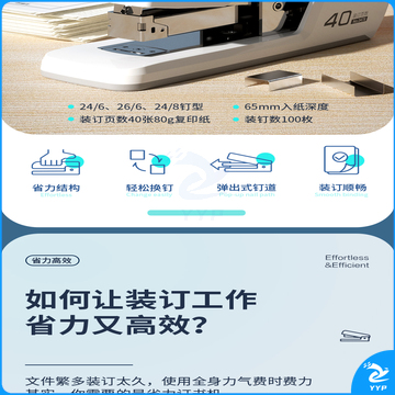 得力(deli)40页省力订书机/订书器 防卡钉功能 弹出式钉道 办公用品 白色0478(不含钉)