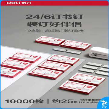 得力(deli)24/6高强度订书钉 12#订书针 1000枚/盒 10盒装 可订25页 办公文具用品 P00012