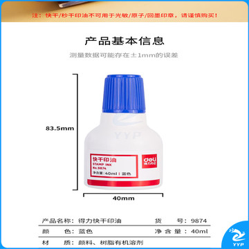 得力(deli)40ml财务印章快干清洁印油印泥 财务用品 办公用品 蓝色9874