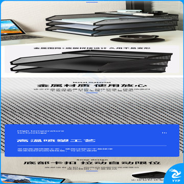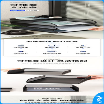 得力可堆叠金属文件框栏文件篮文件托盘书立架多层办公桌面档案收纳盒文件筐铁资料整理置物架四层黑色PB260