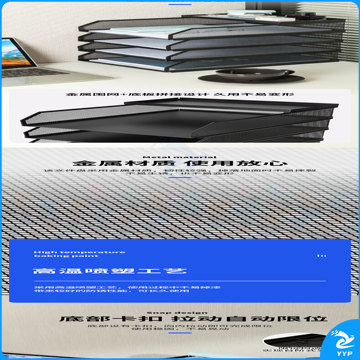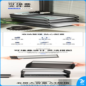 得力可堆叠金属文件框栏文件篮文件托盘书立架多层办公桌面档案收纳盒文件筐铁资料整理置物架五层黑色PB261