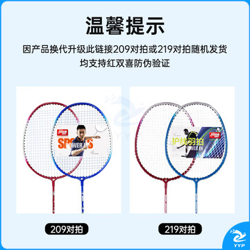 红双喜DHS羽毛球拍对拍2支装实惠训练羽拍双拍209/219(含手胶羽毛球)