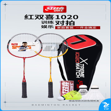 红双喜DHS羽毛球拍对拍实惠双拍合金羽拍1020附羽毛球