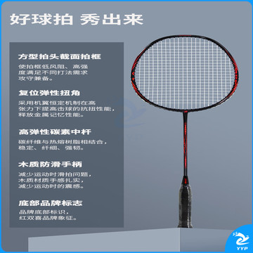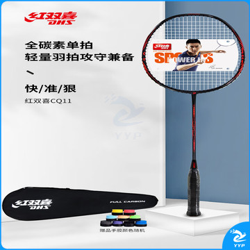 红双喜(DHS)轻量全碳素羽毛球拍单拍快/准/狠cq11闪电红 已穿线含手胶