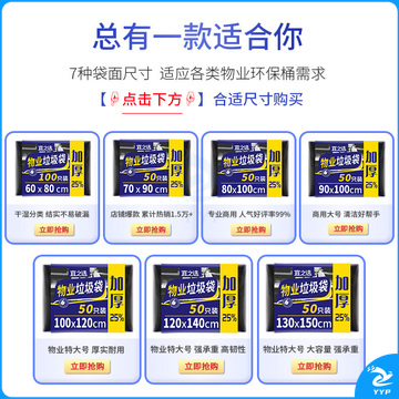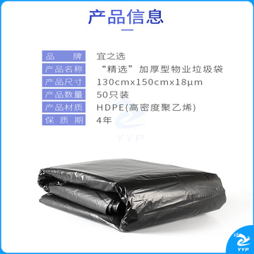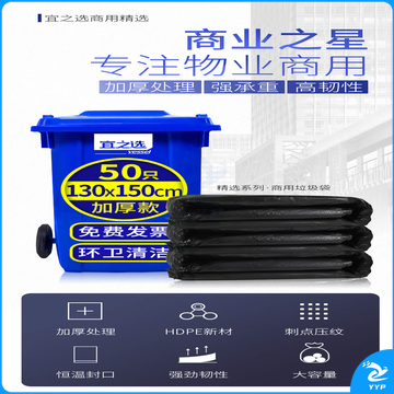 宜之选特大号垃圾袋加厚130*150cm物业50只黑色商用清洁塑料袋