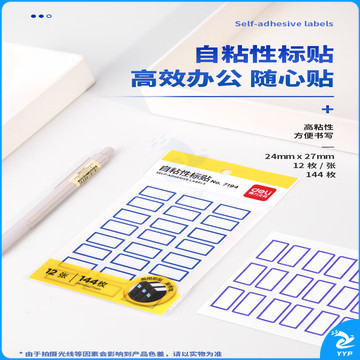 得力(deli) 144枚24*27mm蓝框不干胶标签贴纸便利贴自粘性标贴姓名贴 7194