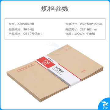 晨光(M&G)文具7号C5牛皮纸信封 229*162mm发票袋 邮局标准信封袋工资袋 30个装AGW98238
