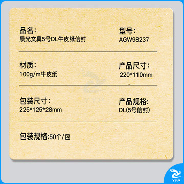 晨光(M&G)文具5号DL牛皮纸信封 220*110mm发票袋 信封袋工资袋 50个装AGW98237