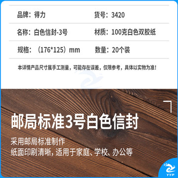 得力(deli)20张3号白色信封 邮局标准信封176*125mm3420-20