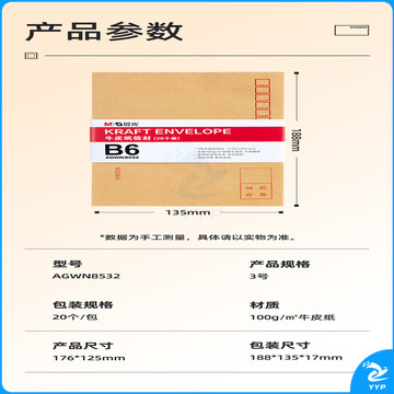 晨光(M&G)文具3号B6牛皮纸信封 176*125mm发票袋 邮局标准信封袋工资袋 20个装AGWN8532