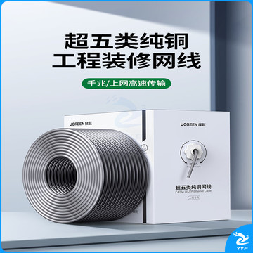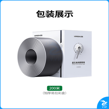 绿联(UGREEN) 超五类千兆网线【0.50±0.008mm纯铜】CAT5e千兆非屏蔽箱线 家装POE监控工程布线灰色200米 90752