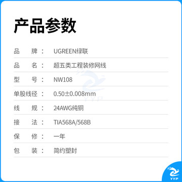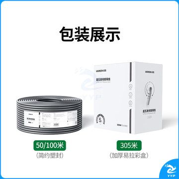 绿联(UGREEN) 超五类千兆网线【0.50±0.008mm纯铜】CAT5e千兆非屏蔽箱线 家装POE监控工程布线灰色50米 15729